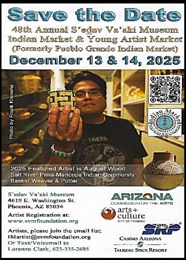 Here is the schedule for this year’s S’edva Va’aki (Pueblo Grande Museum ) Indian Market
